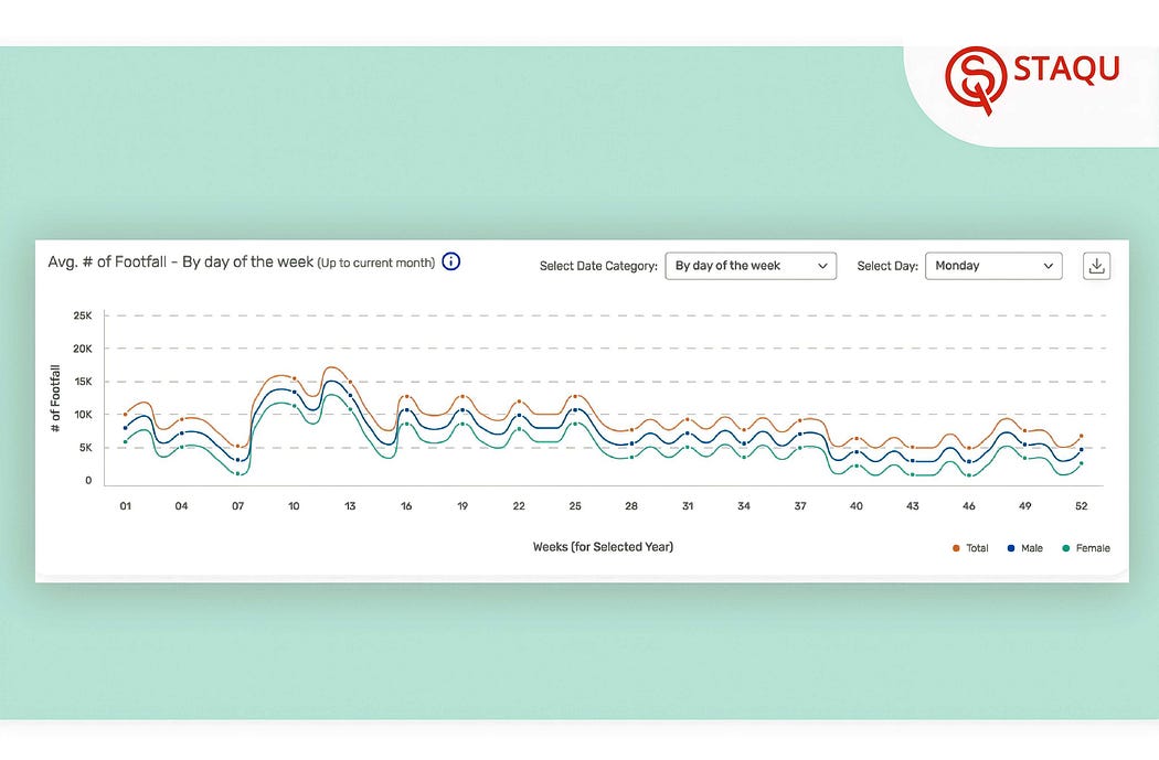 Staqu’s video analytics solution, JARVIS, is used by major retail companies. The JARVIS dashboard was explicitly designed with client convenience in mind. Numerous features in the product’s qualitative retail dashboard, broken down into the single store and aggregate levels, offer in-depth insights into your retail business. For example, you can check the daily footfall count of your retail stores, compare data from different weeks of the year, and other details. If you are looking to track your retail business’s performances on a certain day of the week across the year, say Monday of the year 2022, the JARVIS dashboard’s descriptive user interface will display the data of Monday of each week throughout the year in an informative graphical format. As a retail business owner, you can also trace the aggregate data of your stores across different regions using the video analytics solution JARVIS.